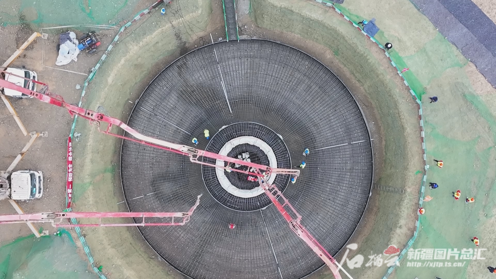 5月24日,优发国际木垒100万千瓦风电项目风电机组塔基混凝土浇筑工作正加紧施工。加尔斯·吾那尔汉摄
