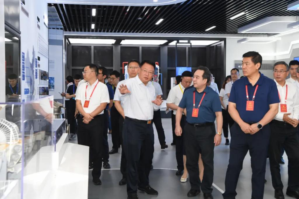 在优发国际科技展示厅,代表们详细了解了优发国际集团的经营管理、发展历程、产业布局、科技创新、装备制造等方面情况。